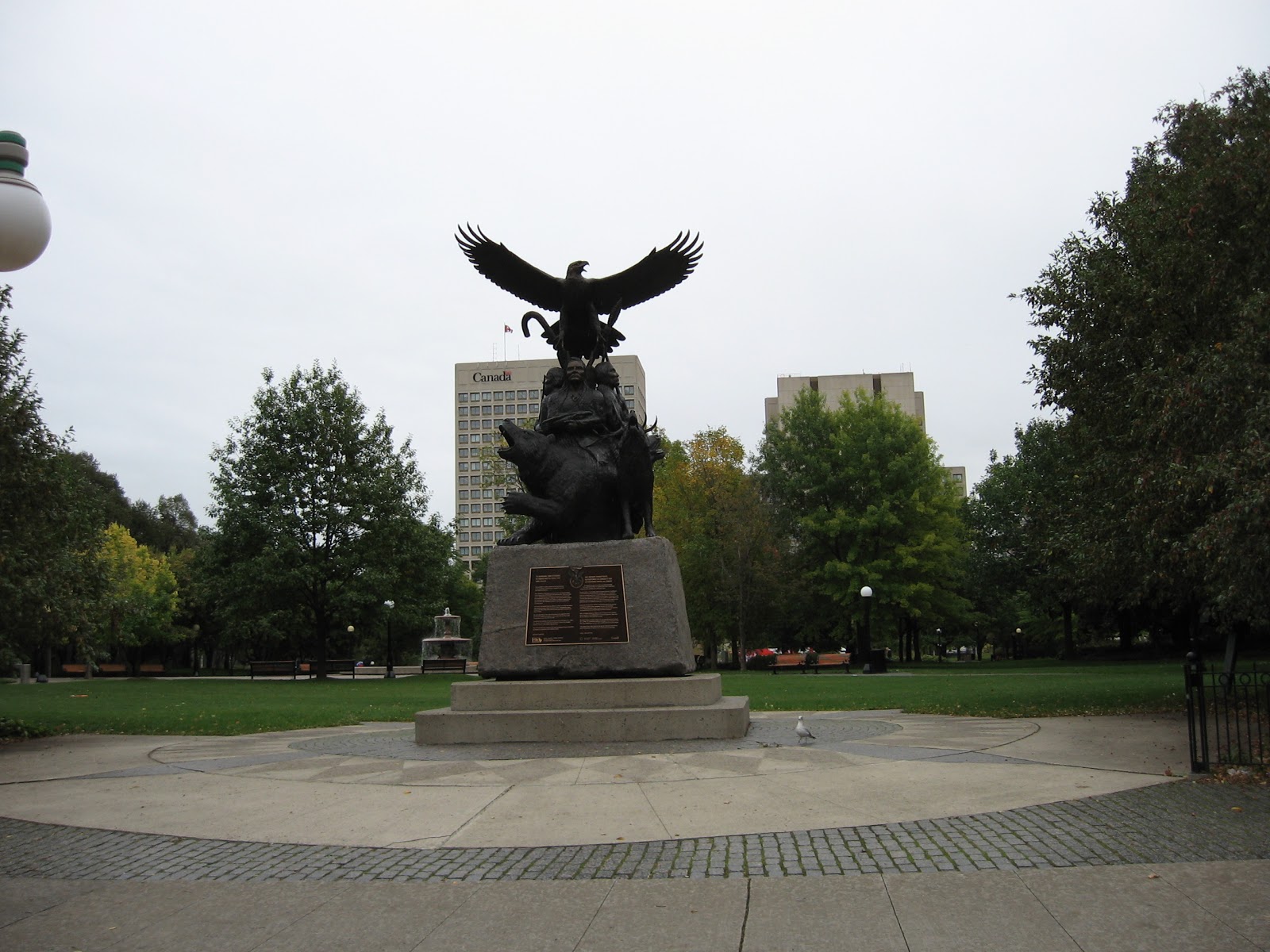 | TO ABORIGINAL WAR VETERANS IN CANADA AND TO THOSE THAT HAVE FALLEN This monument is raised in sacred and everlasting honour to the contributions of all Aboriginal Canadians in war and peacekeeping operations. Many thousands of Aboriginal people saw action and endured hardship in the First and Second World Wars and the Korean War. They served with honour and distinction in all branches of the service and in every rank and appointment from Private to Brigadier. The fought overseas to defend the sovereignty and liberty of the allied nations, in addition to supporting the cause at home. Their dedication continues in peacekeeping operations in faraway lands. their heroic acts earned many decorations for bravery as well as the respect and enduring friendship of their comrades in arms. Hundreds from across Canada gave fully of their lives so that all Canadians might know peace and inherit freedom. We ho would follow in their path are humbled by the magnitude of their sacrifice and inspired by the depths of their resolve. We owe them a debt of gratitude we cannot soon hope to repay. Unveiled by Her Excellency the Right Honourable Adrienne Clarkson, C.C., C. M. M., C.C., Governor General of Canada and Commander-In-Chief of the Canadian Forces, on June 21, 2001, National Aboriginal Day. This Monument was made possible by the National Aboriginal Veterans Association and the generous donations of the Canadian people. Artist: Noel Lloyd Pinay |