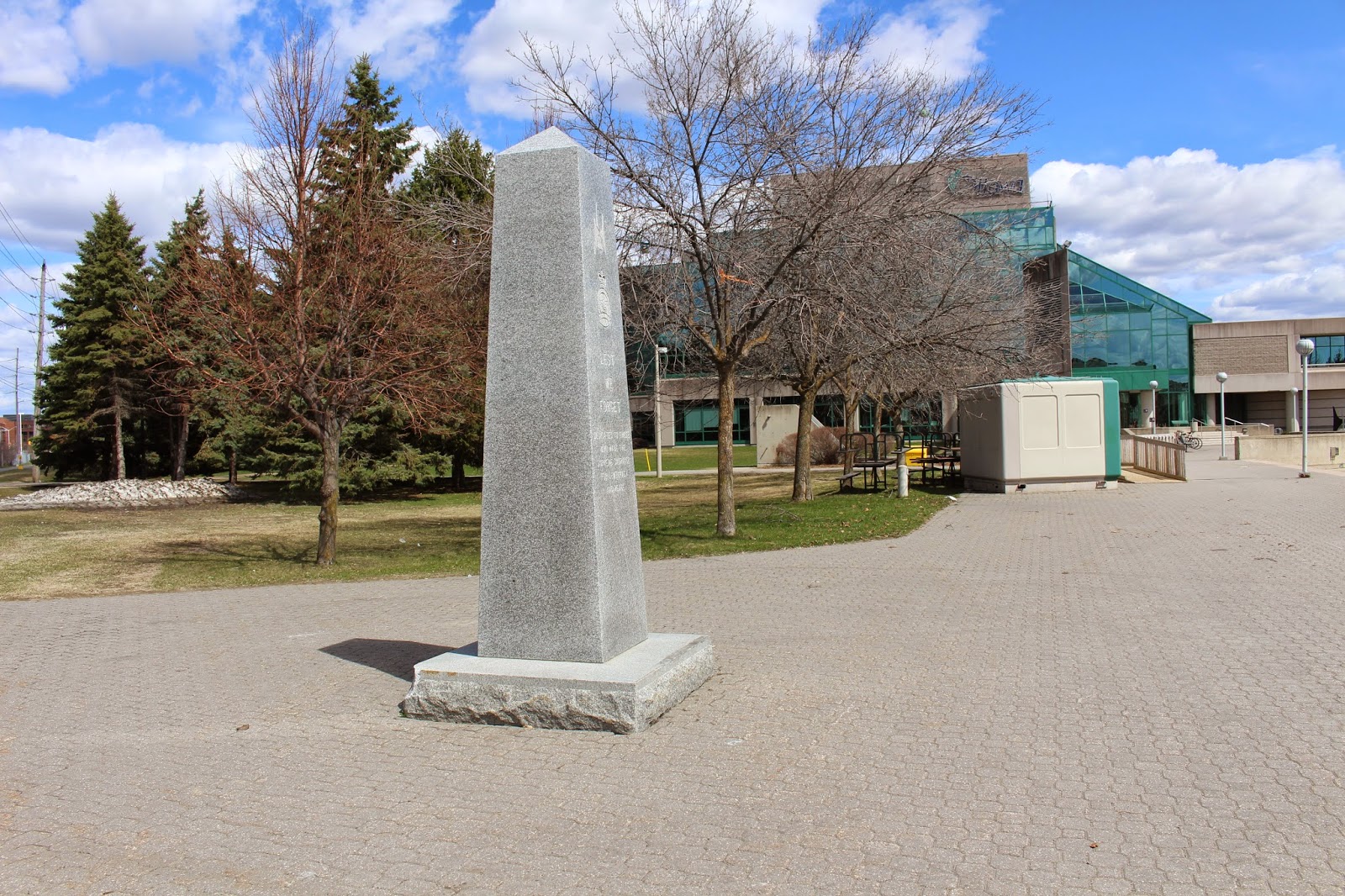 The Nepean Cenotaph stands at the northwest corner of the grounds of Ben Franklin Place near Centerpointe Drive. The granite obelisk was dedicated on September 20, 1992