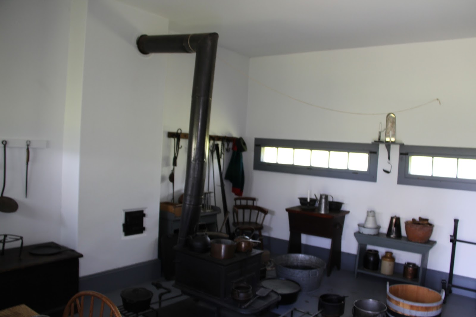 This is where the officer's meals were prepared and household chores were performed. Each officer had his own servant (regimental soldier) whose duties included housework, meal preparation and clothes washing.