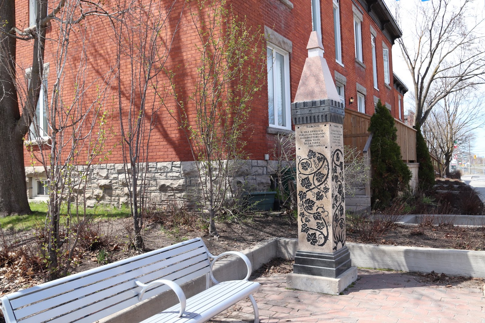 The fifteen human-sized sculptures express fragments of culture, history and geography reflecting the eclecticism of today's community. Artist c j fleury collaborated with local Italian-Canadians to gather the stories and traditions she incorporated into the artwork. Grapevine motifs, ceramic patterning, literary excerpts and heirloom textiles ae some of the many elements to be discovered.
