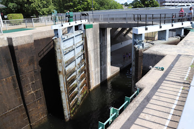 This post will first deal with Smiths Falls' dams and waste water weirs starting in the west, then following the flow of water to the east, north around the Rideau Canal Headquarters and visitor centre (featured in another post) and then downstream from the complex. It will then come back from the east, showing the closed locks, 28, 29 and 30, and finish off detailing the combined lock, 29a, which provides a lift of 7.9 m (26 ft.).