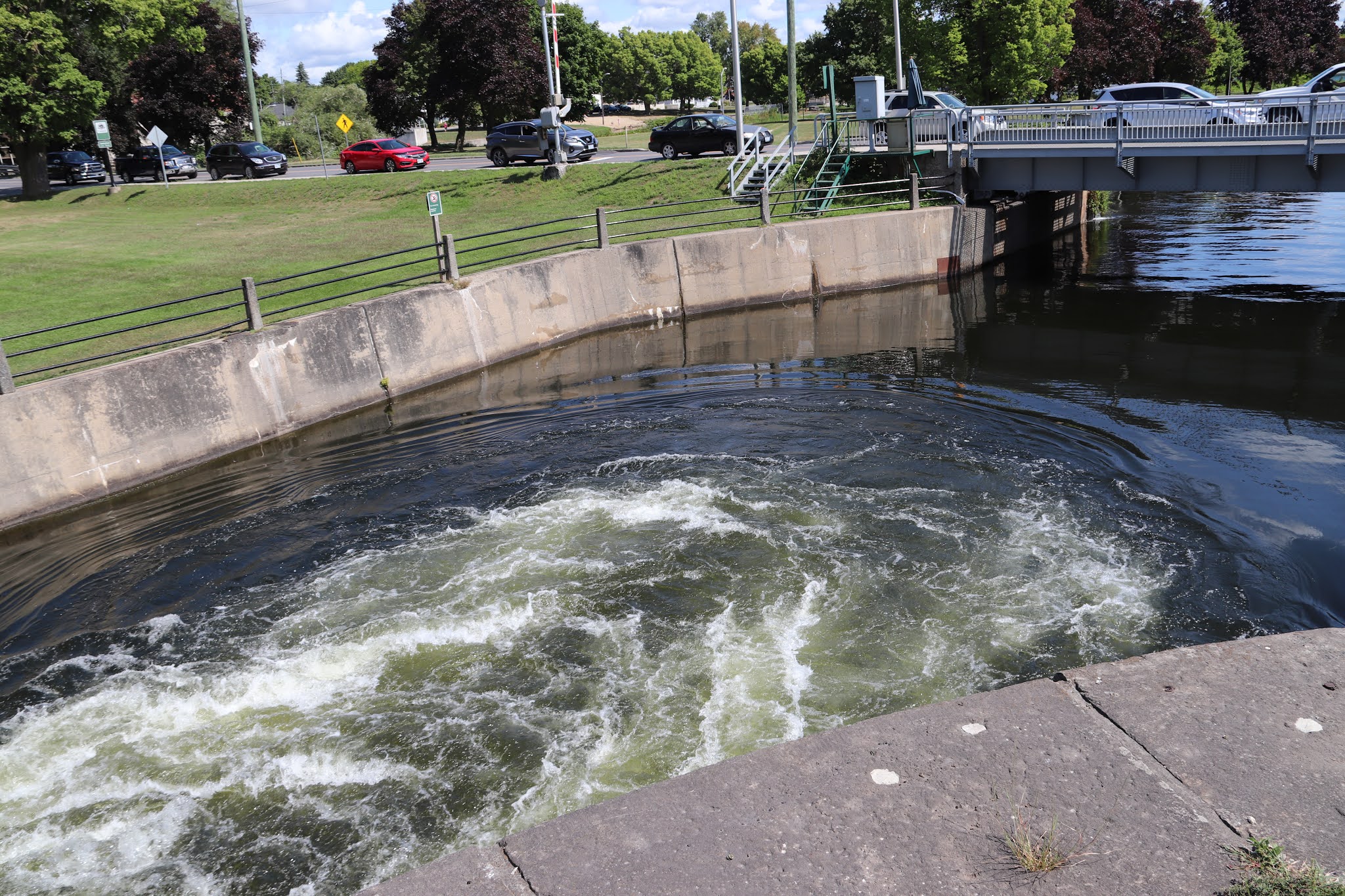 Un des attraits de cette région est le pont basculant roulant, ou pont Scherzer, situé à 107 mètres (350 pieds) en amont de l'écluse. Le Canadien Northern construisit cette structure massive en 1914 et l'utilisa jusqu'en 1984, année de fermeture du tronçon.